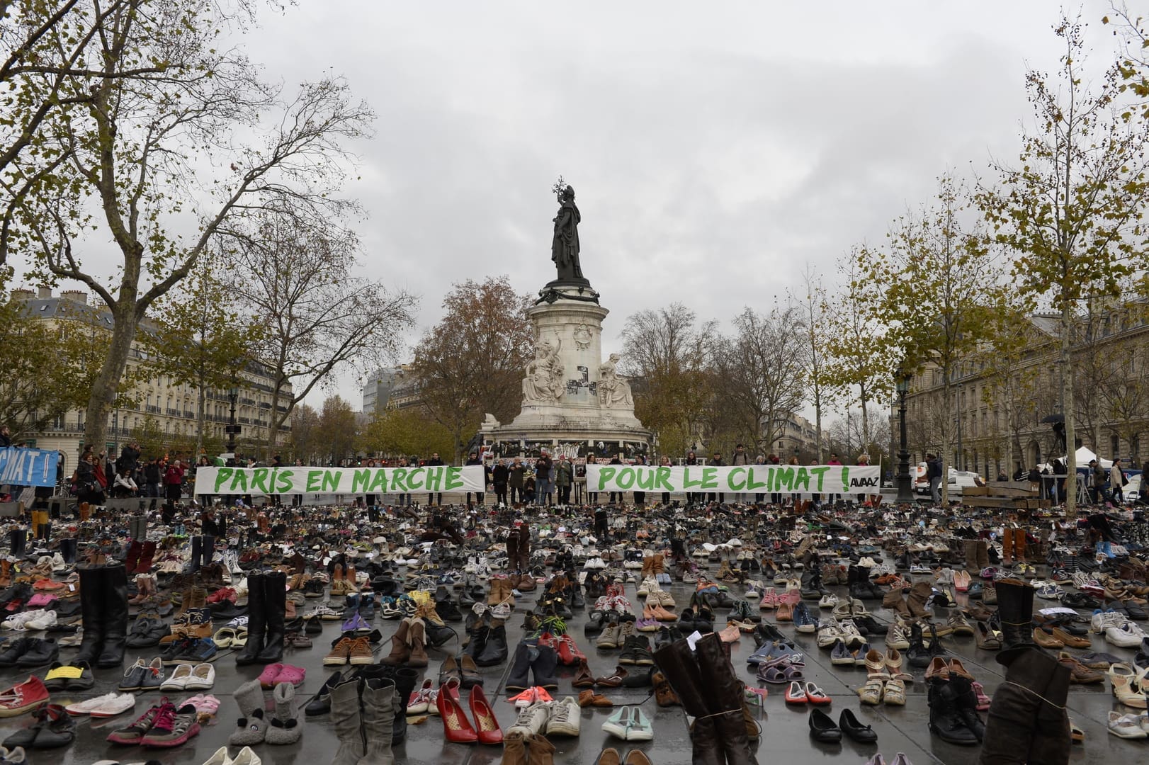 Ce mouvement de protestation original, à la veille de l’ouverture du sommet sur le climat (COP21) à Paris, a été mis en place par Avaaz, une ONG qui avait, depuis une semaine, prévu plusieurs points de collecte pour que les manifestants puissent déposer leurs chaussons, bottes ou baskets, entre autres. Au total, « plus de quatre tonnes » de chaussures ont été récupérées ont fait savoir les organisateurs.