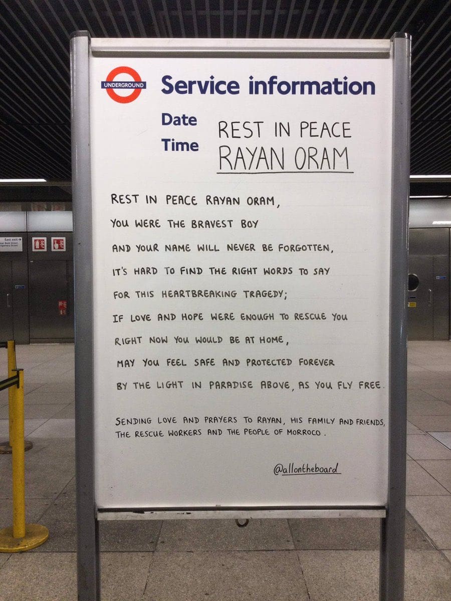 Depuis sa mort, les hommages se sont afflués, au Royaume-Uni, un message de condoléances rédigé par le personnel du métro de Londres a été salué. En Jordanie, des dizaines de personnes ont mené une procession près d’une mosquée de la capitale Amman en mémoire de Rayan.