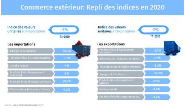 Les indices du commerce extérieur (ICE) se sont orientés à la baisse durant l’année écoulée par rapport à 2019, selon le Haut-Commissariat au plan (HCP).