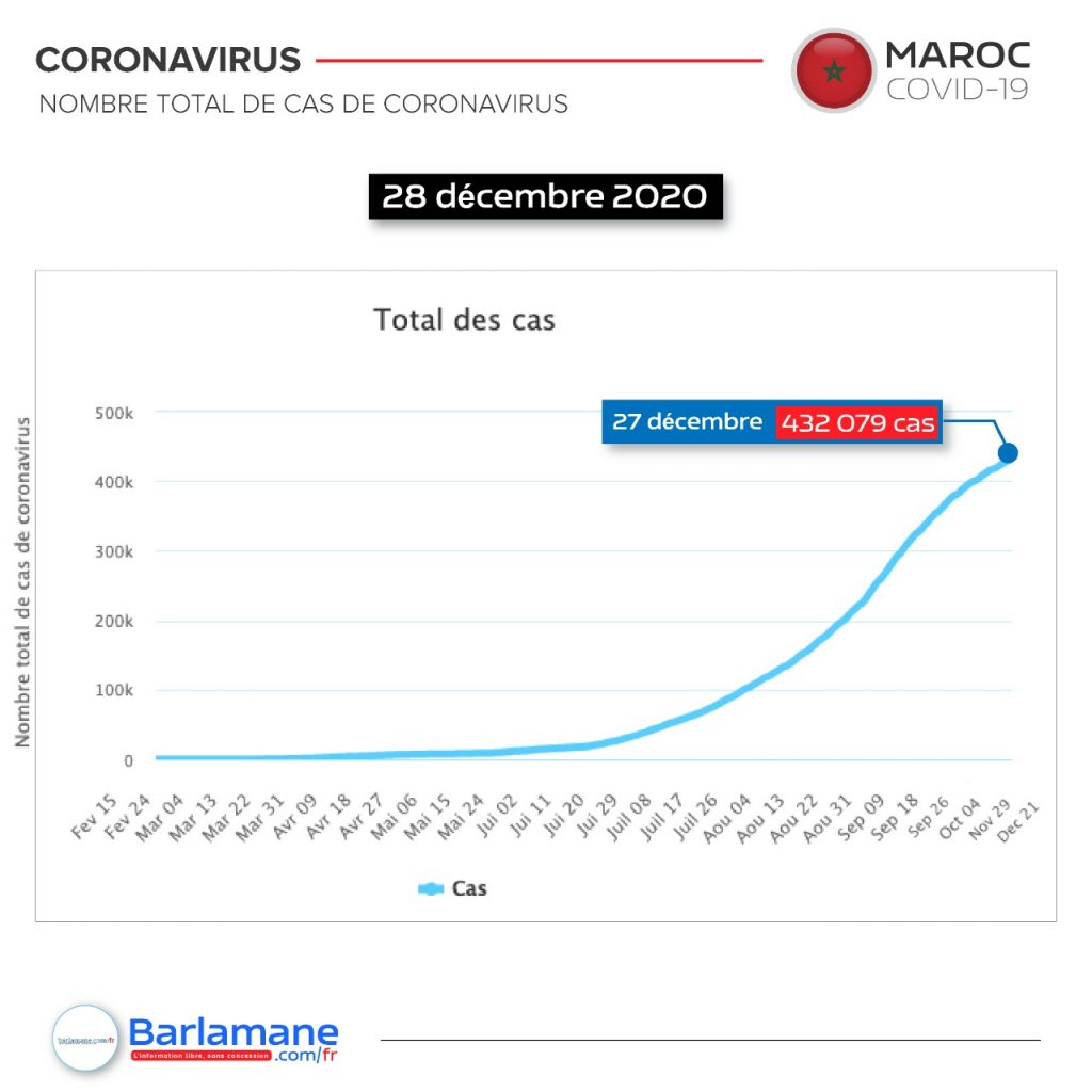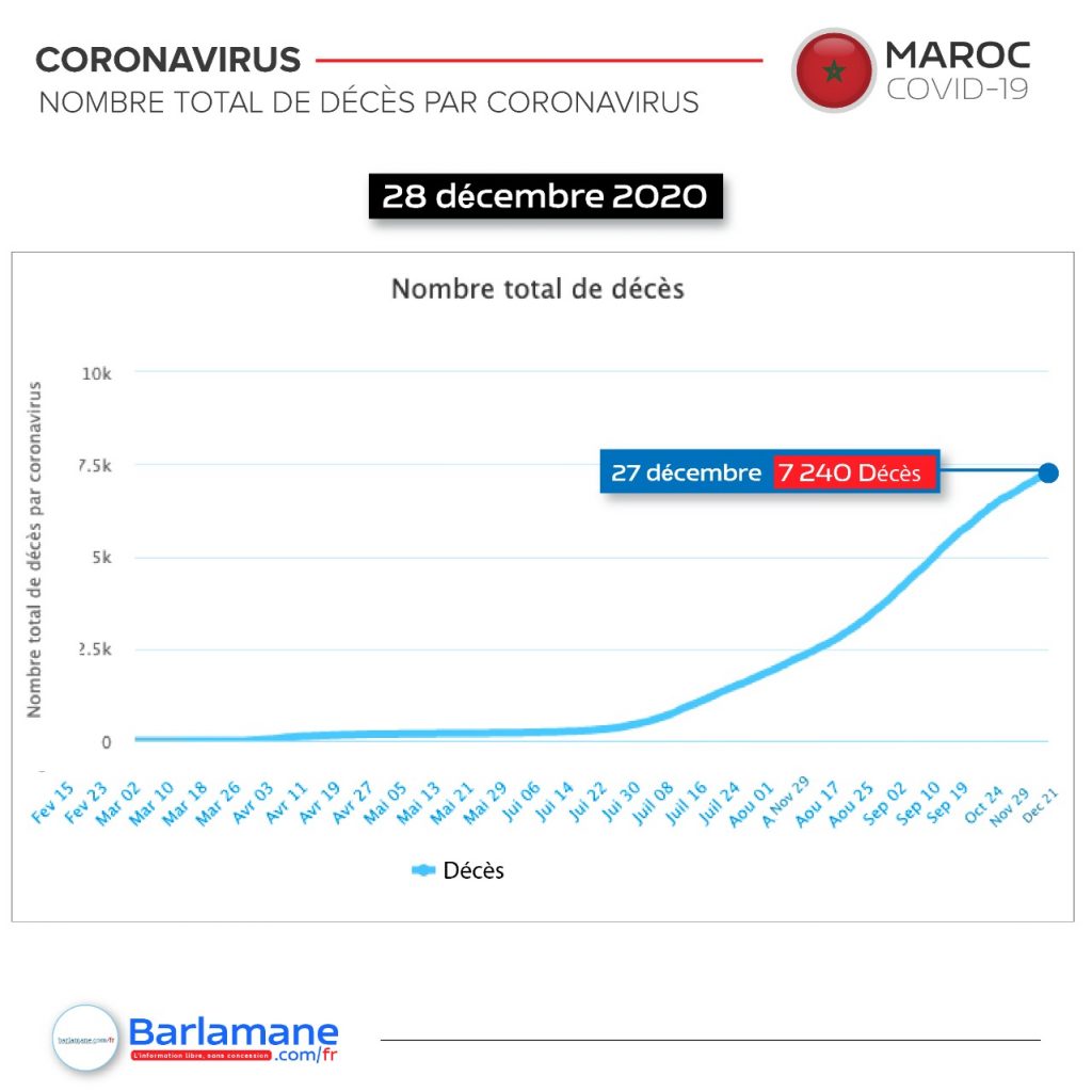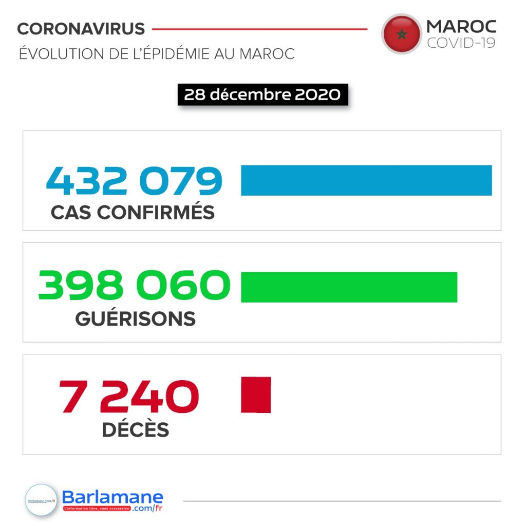 Plus de 432 000 cas de contamination par le coronavirus ont été recensés au Maroc, mais sans aucune trace du nouveau variant du SARS-CoV-2 observé au Royaume-Uni et dans d’autres pays sur le territoire national. Selon un bilan établi dimanche 27 décembre par Barlamane.com, la Covid-19 a fait 7 240 morts au Maroc depuis que le bureau de l’Organisation mondiale de la santé (OMS) et les autorités sanitaires nationales ont fait état de son apparition sur le territoire, début mars.