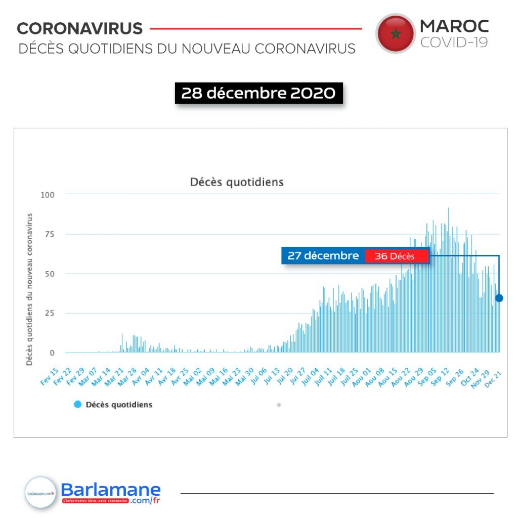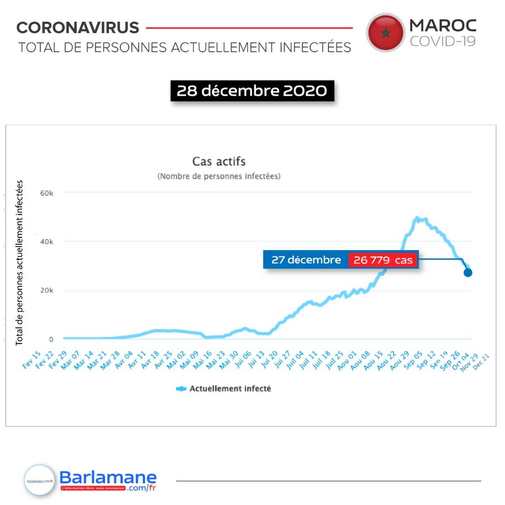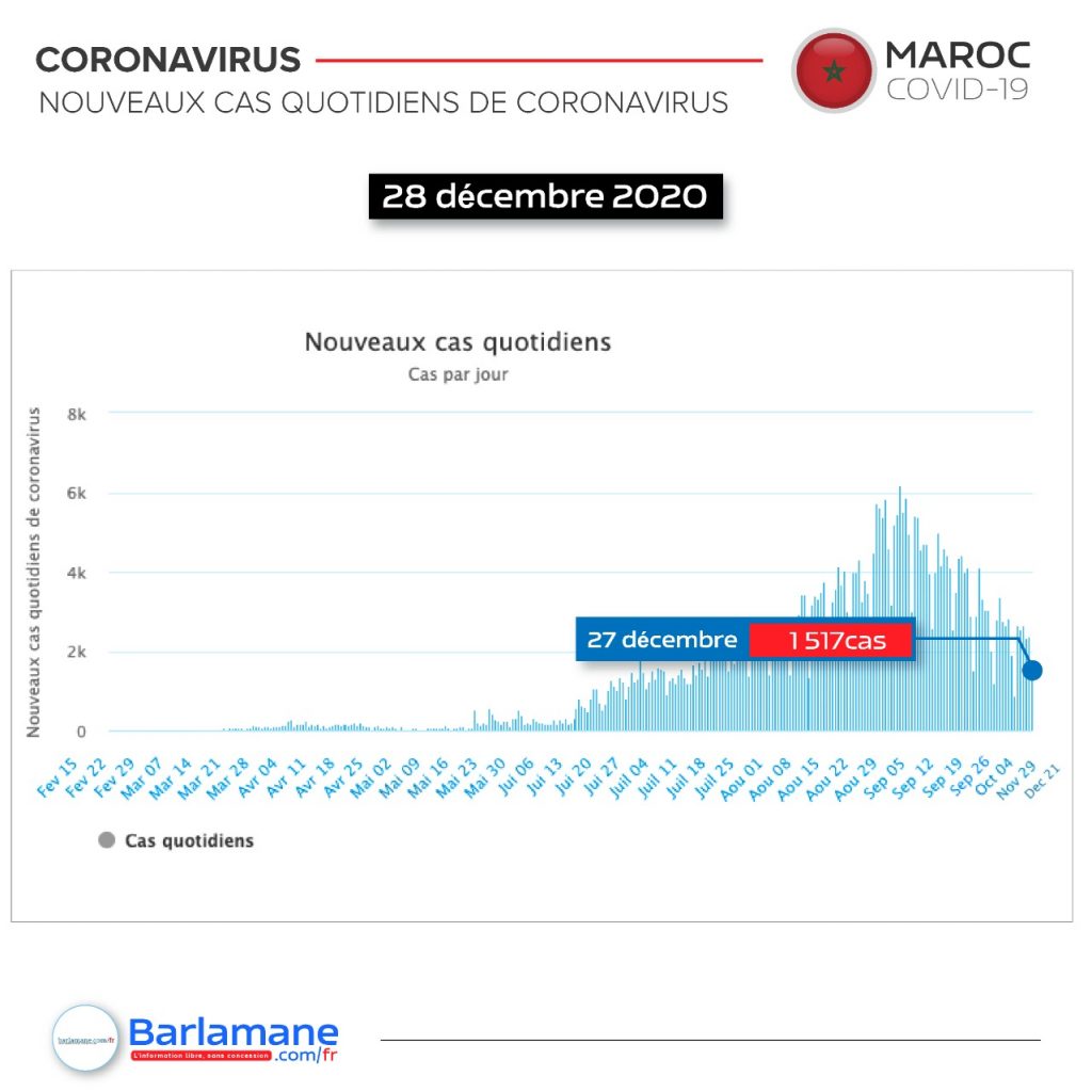 Plus de 432 000 cas de contamination par le coronavirus ont été recensés au Maroc, mais sans aucune trace du nouveau variant du SARS-CoV-2 observé au Royaume-Uni et dans d’autres pays sur le territoire national. Selon un bilan établi dimanche 27 décembre par Barlamane.com, la Covid-19 a fait 7 240 morts au Maroc depuis que le bureau de l’Organisation mondiale de la santé (OMS) et les autorités sanitaires nationales ont fait état de son apparition sur le territoire, début mars.
