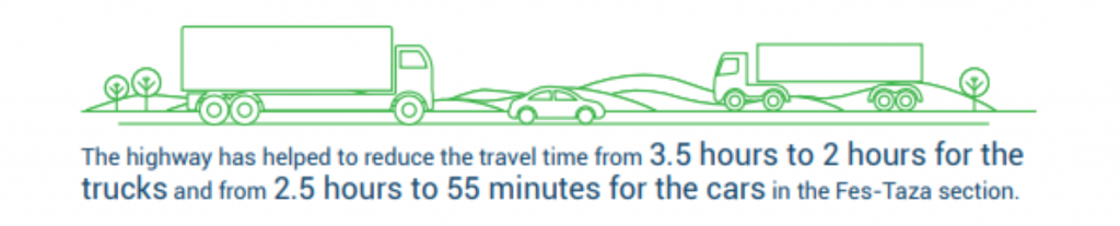 En termes d’infrastructures, la contribution de la BID a permis de construire 127 kms de route entre l’axe Fès et Taza, ainsi que 325 kms d’autoroute entre Fès et Ouja, 8 ponts, et 5 tunnels.