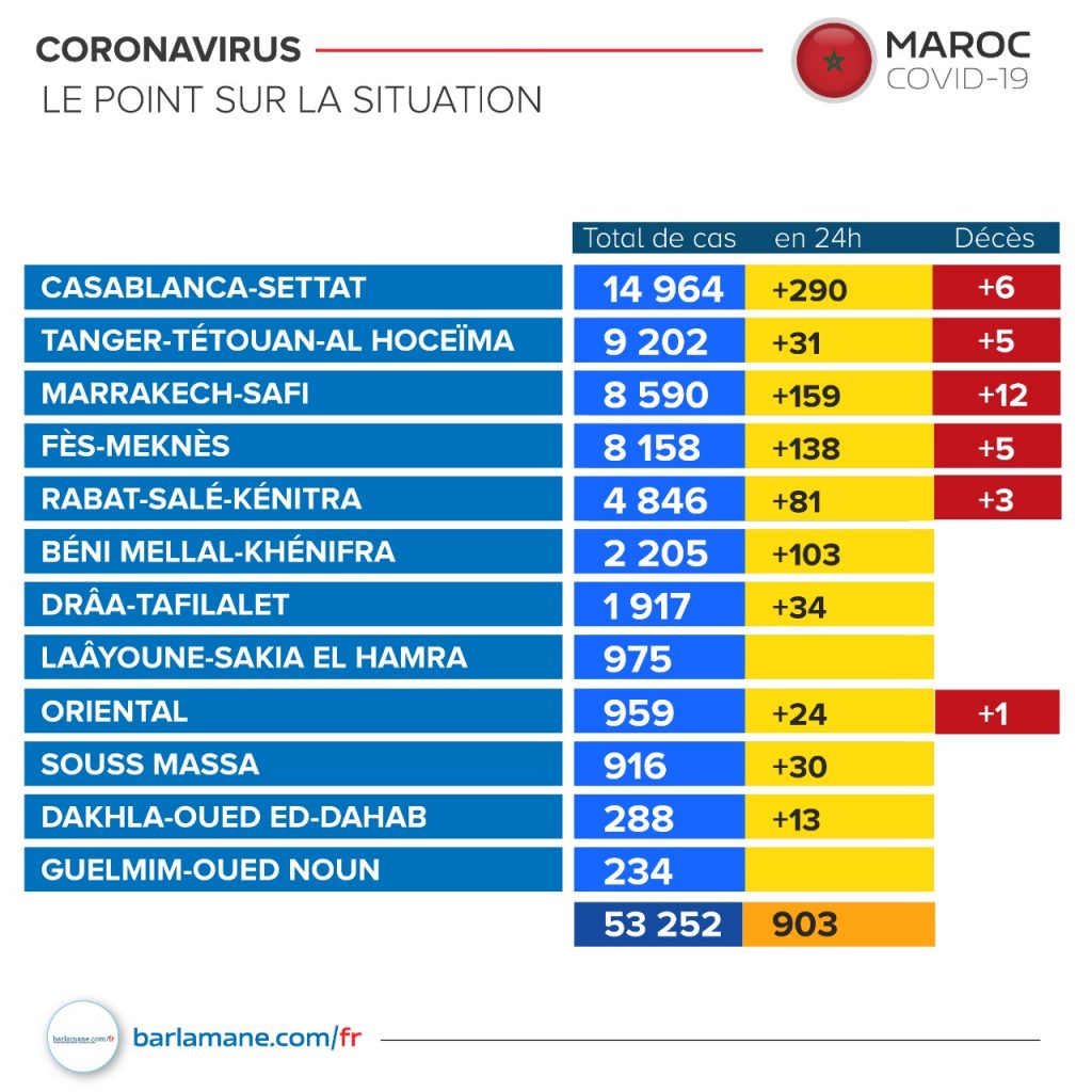 Le nouveau bilan porte à 53 252 le nombre de contaminations dans le Royaume depuis le premier cas signalé le 2 mars et à 37 478 celui des personnes totalement rétablies, a précisé le coordonnateur du Centre national des opérations d’urgence de santé publique au ministère de la Santé, Mouad Mrabet.