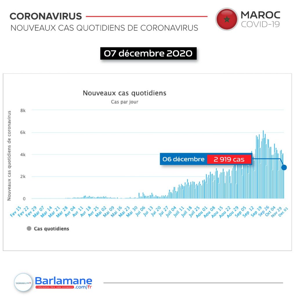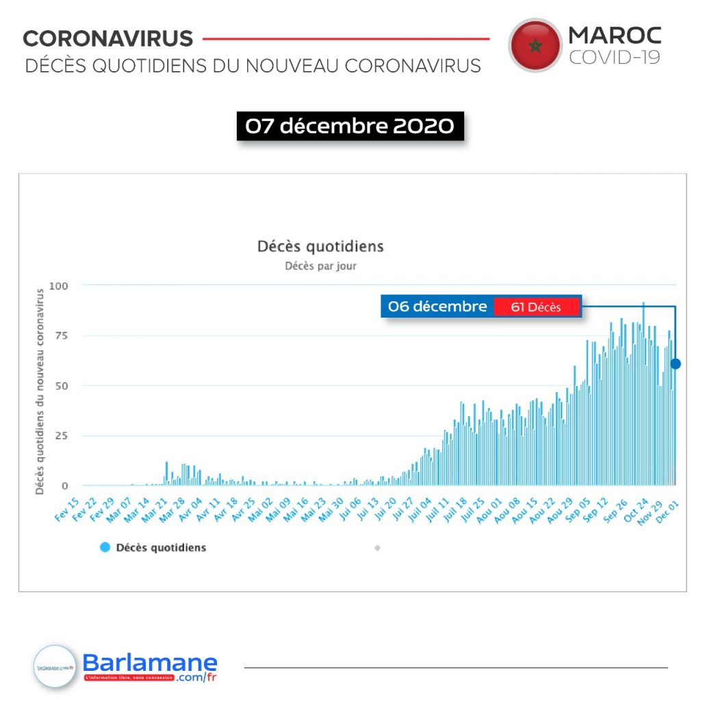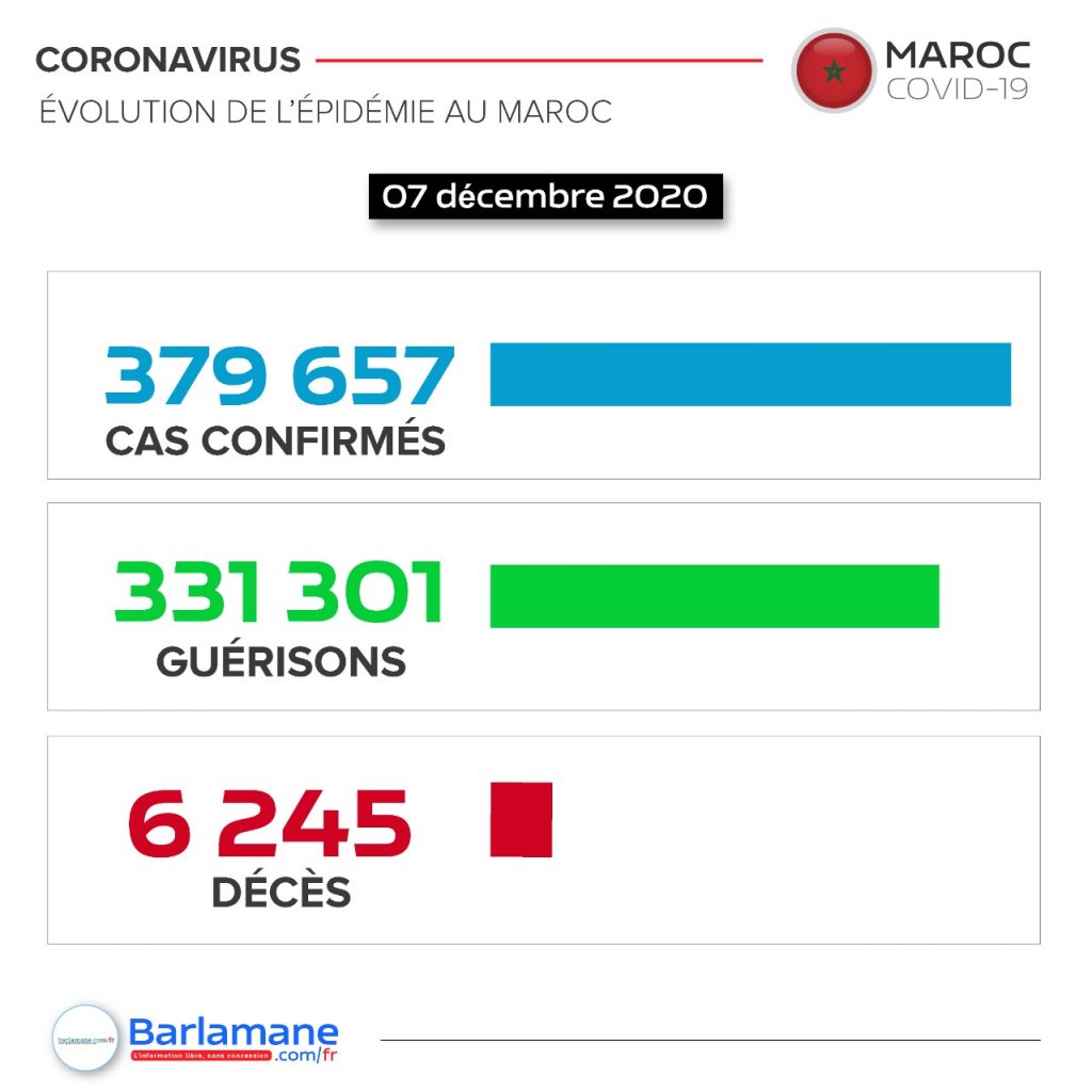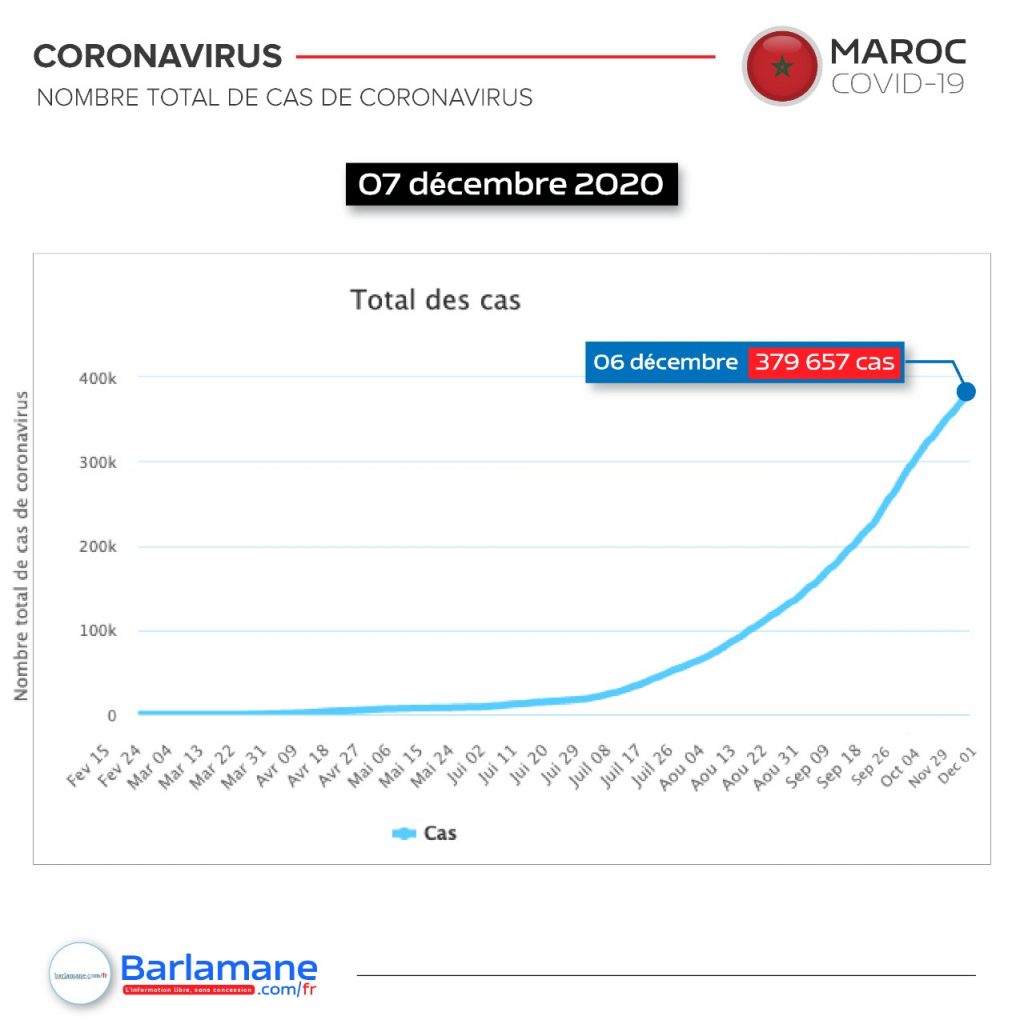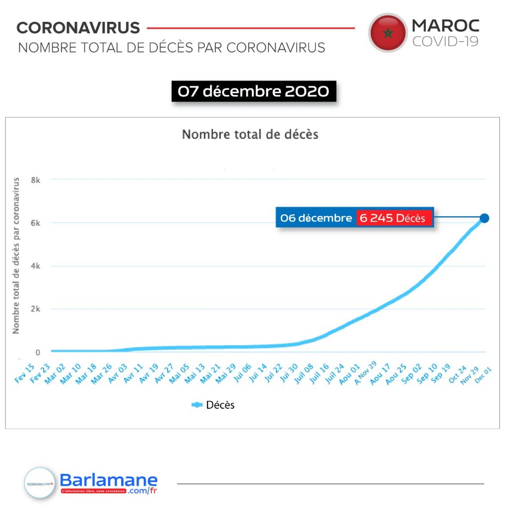 La pandémie du nouveau coronavirus a fait plus de 6 000 morts au Maroc depuis début mars, selon un bilan établi ce lundi par Barlamane.com/fr à partir de sources officielles. Plus de 379 657 cas d’infection ont été officiellement recensés.
