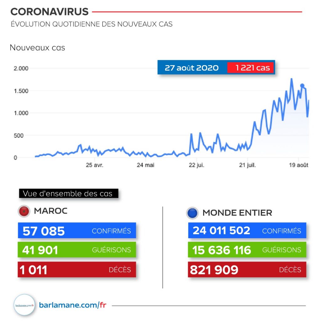 Ce nouveau bilan porte à 57.085 le nombre de contaminations dans le Royaume depuis le premier cas signalé le 2 mars et à 41.901 celui des personnes totalement rétablies, a précisé le coordonnateur du Centre national des opérations d’urgence de santé publique au ministère de la Santé, Mouad Mrabet.