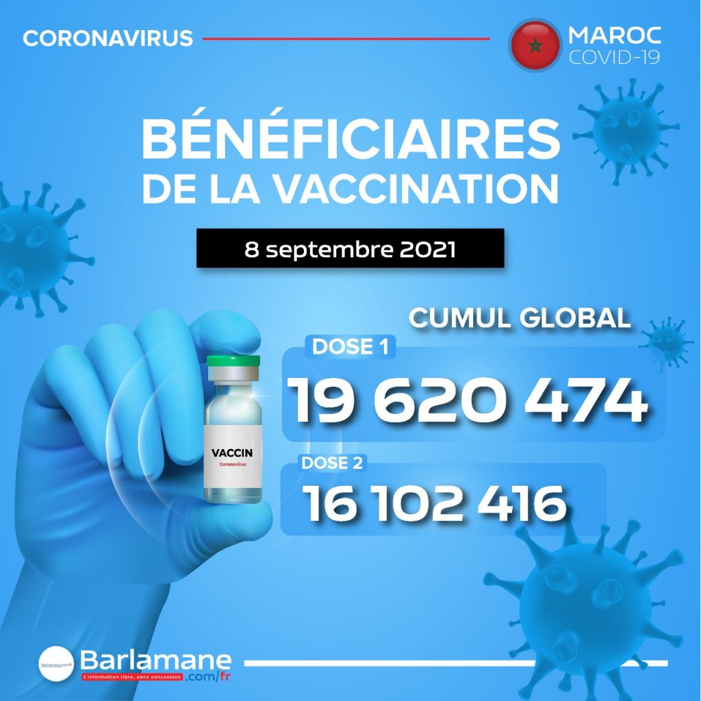 Le nombre de primo-vaccinés est de 19.620.474, alors que celui des personnes complètement vaccinées (1ère et 2ème doses) s’élève à 16.102.416, a précisé le ministère dans son bulletin quotidien sur la situation épidémiologique Covid-19.