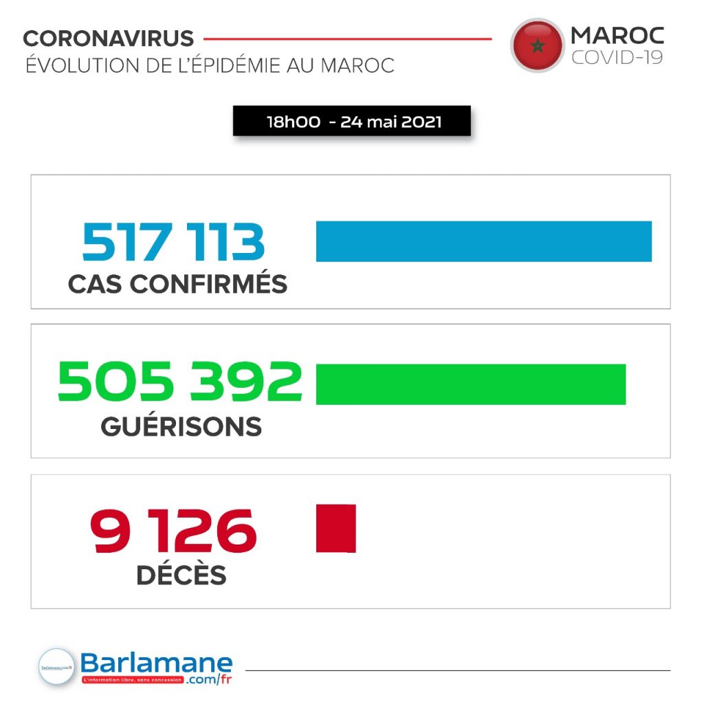 Le nouveau bilan porte à 517 113 le nombre total des contaminations depuis le premier cas signalé en mars 2020, et à 505 392 celui des personnes totalement rétablies, soit un taux de guérison de 97,7%, a précisé le ministère dans son bulletin quotidien sur la situation de la Covid-19.
