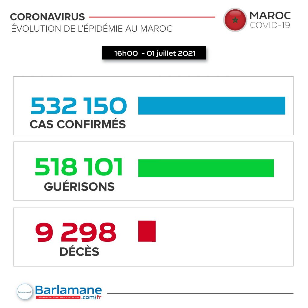 Le nombre des personnes rétablies est passé à 518 101, soit un taux de guérison de 97,4 %, alors que celui des décès est passé à 9 298 avec 2 nouveaux cas enregistrés dans les régions de Casablanca-Settat et Rabat-Salé.
