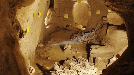 Les experts iraniens ont aussi exhumé durant ces fouilles une centaine de squelettes. Disposés dans une position caractéristique de l’époque arsacide – la dynastie des rois parthes qui a régné sur la région de 250 av-J.C. à 224 ap-J.C. – ces restes humains ont été retrouvés disséminés dans neuf des pièces mises au jour.