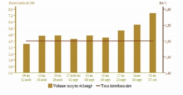 Sur les autres marchés, les taux des bons du Trésor n’ont pas connu des variations significatives en septembre aussi bien sur le compartiment primaire que secondaire.