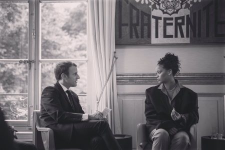 À noter qu’alors que devant l’Elysée des centaines de fans, dont beaucoup de jeunes, se pressaient sur le trottoir dans l’espoir d’apercevoir la star, Rihanna, vêtue d’une très ample veste anthracite, a été accueillie sur le perron de l’Elysée par Brigitte Macron, jean slip et veste blanche . En revanche, Emmanuel Macron ne s’est pas affiché avec la chanteuse devant les photographes.