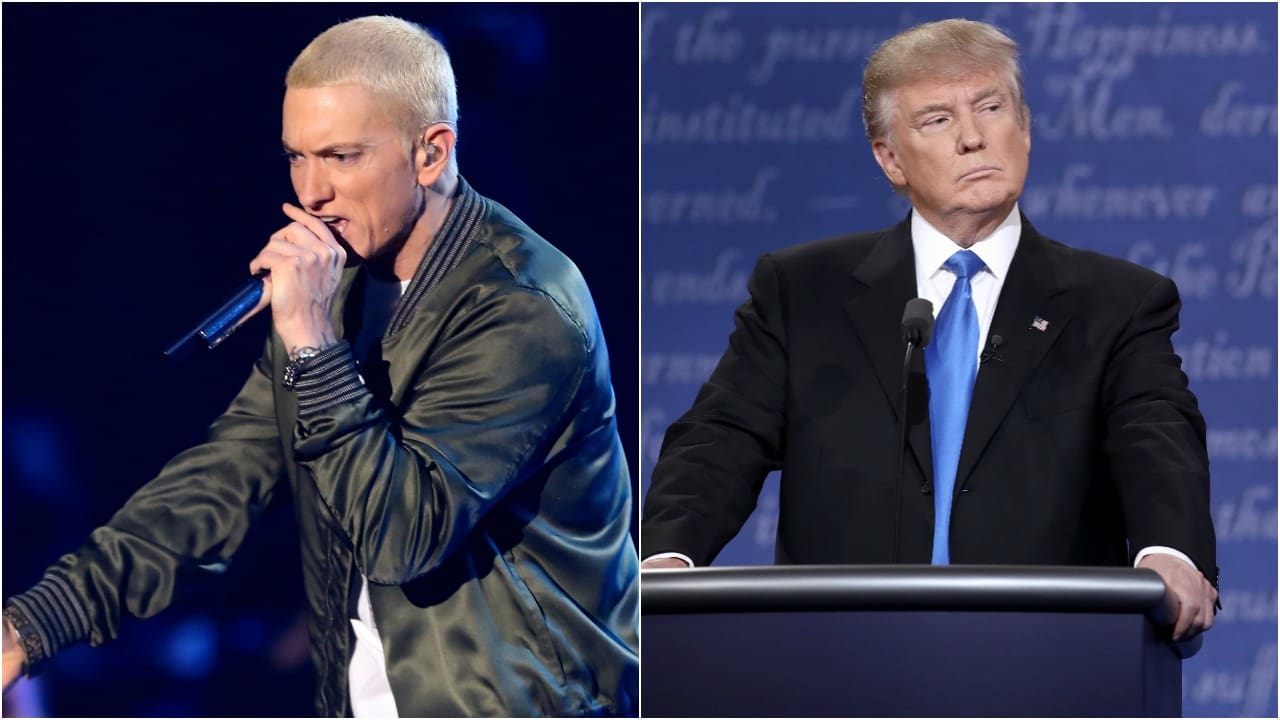 À noter toutefois que Donald Trump avait lui-même « fait campagne » pour Eminem en 2004.Comme le rappelle le site Mother Jones, le milliardaire avait effectué une apparition surprise à New York, lors d’un événement de promotion de l’album Encore d’Eminem, alias Slim Shady. Un détail qui a surement échappé au rappeur… ou pas..