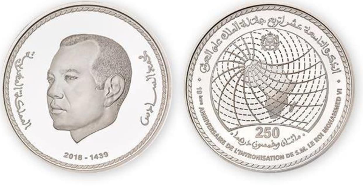 Bank Al-Maghrib a annoncé, lundi 30 juillet, l’émission d’une pièce commémorative d’une valeur faciale de 250 dirhams en argent, à l’occasion du 19e anniversaire de l’intronisation du roi Mohammed VI.