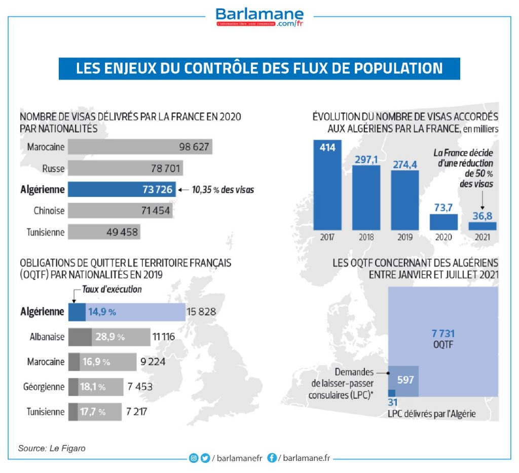 «Concrètement, Paris attendait des réponses d’Alger sur une série d’affaires courantes (la reprise des immigrés clandestins, des facilités pour les visas professionnels, de l’accompagnement dans le développement des écoles et des instituts français et dans les projets de partenariats économiques). Or, aucun de ces dossiers n’a avancé alors que se sont greffés des désaccords sur des sujets ultrasensibles», selon le politologue franco-tunisien.