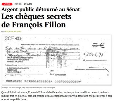 Mediapart a publié samedi les reproductions d’un chèque et du talon d’un second, pour des montants respectifs de plus de 3.000 euros. Des documents qui seraient les traces d’un « vaste système de détournement de fonds publics » dont aurait bénéficié le vainqueur de la primaire à droite à l’époque où il siégeait au Sénat.