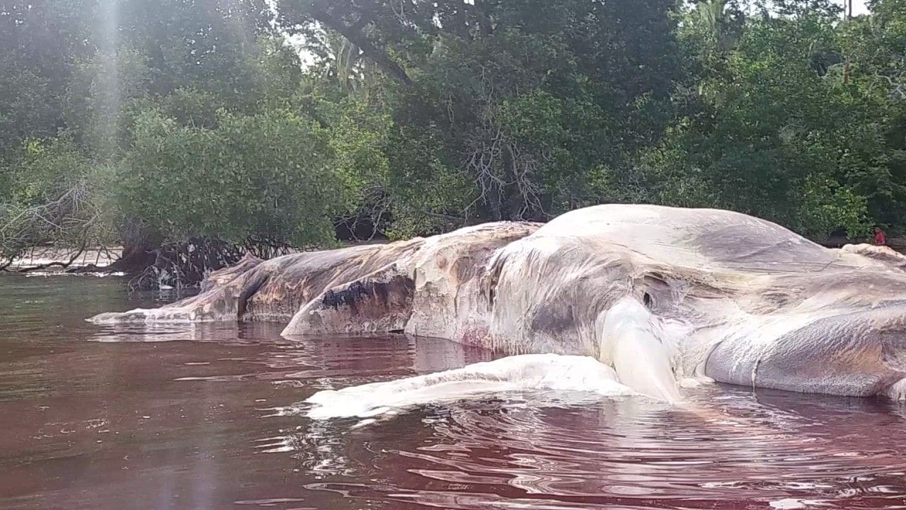 Putréfié et sanguinolent, l’animal a été découvert mort par un habitant de l’île qui l’a d’abord confondu avec la carcasse d’un bateau échoué.