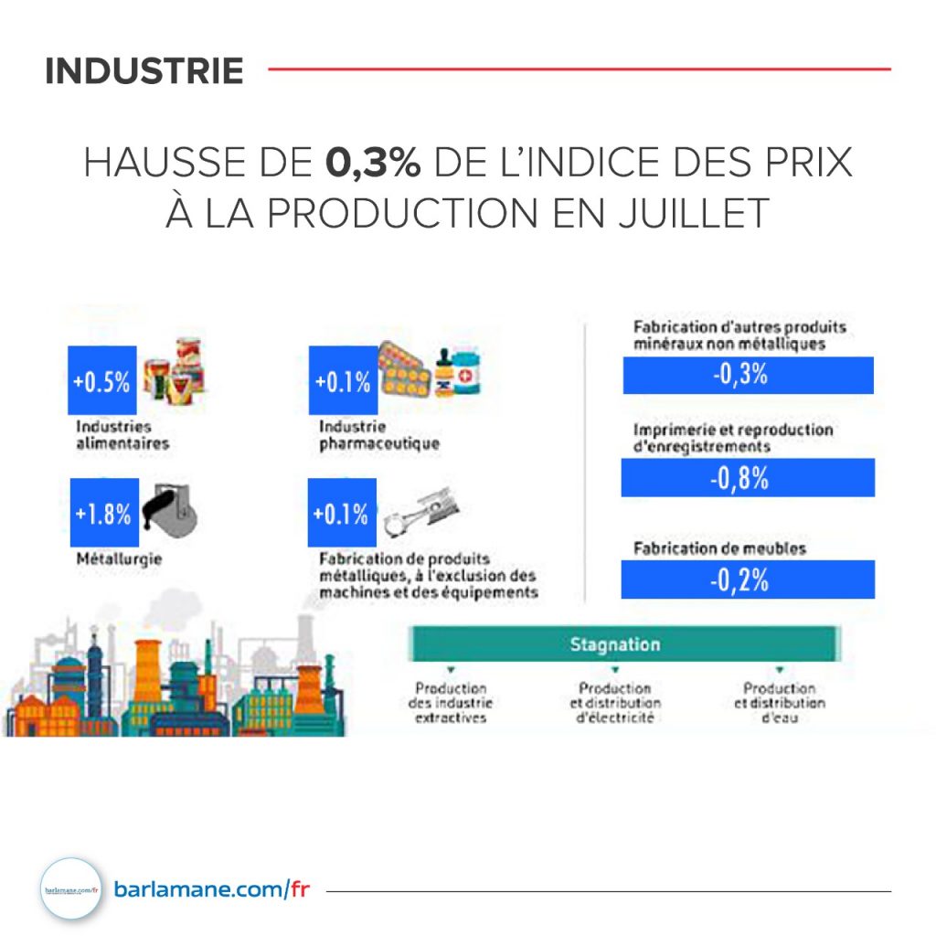 En revanche, les indices des prix à la production des secteurs des « Industries extractives », de la « Production et distribution d’électricité » et de la « Production et distribution d’eau » ont connu une stagnation au cours du mois de juillet, fait savoir la même source.