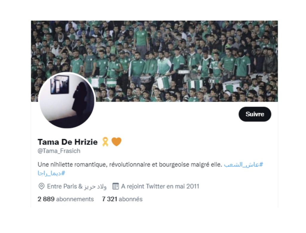 Surtout kan on sait que ce ruban était un geste de soutien et de compassion pour un twitto dont la femme est décédée (lah y re7ma) et que même d’éminents membre de l’opposition de 3ème division l’ont posté sur leurs comptes, telle la fille de « Mustaline », l’indéboulonnable secrétaire national d’annahj addimocrati….