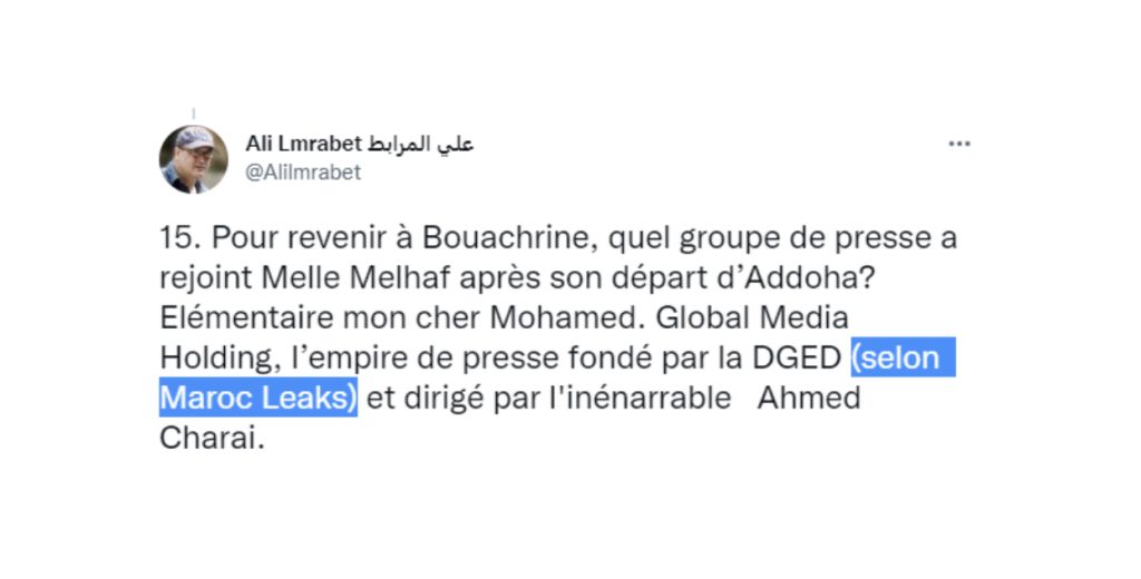 Mais le peuple marocain n’est pas dupe…quand il voit par exemple une polémique toute pourrie créée de toute pièce par Ali Lmrabet sur twitter et ne suscitant l’intérêt de personne (surtout qu’elle date de 8 ans), se retrouver comme par hasard sur le site « Maghreb Online » eh bah ce peuple se pose des questions…
