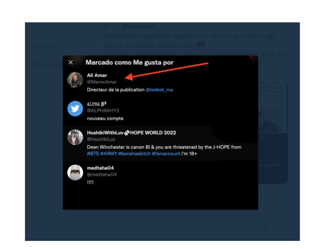 Un peu plus tard tu estimes que c’est peut-être Ali Amar, le directeur du Desk qui serait derrière le compte « Dbibina », vu qu’il lui arrivait d’interagir avec moi…