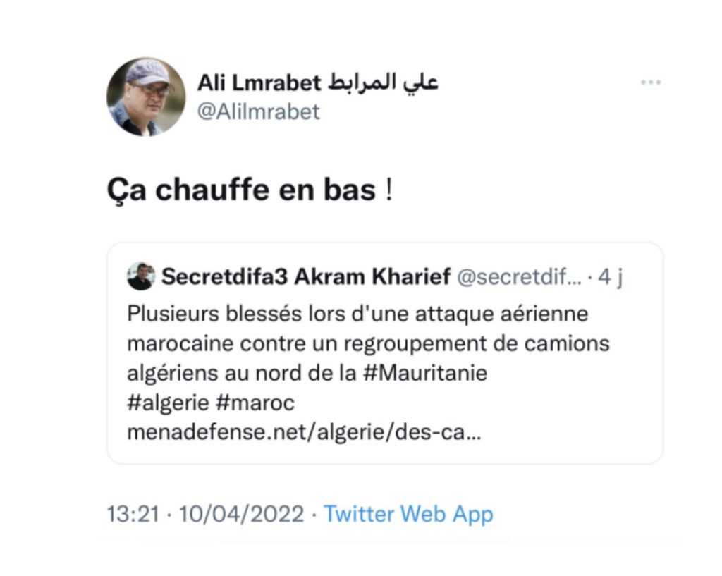 Il y’a kkes jours, ce sbire de Chengriha est sorti, encore une fois, pour nous dire que le Maroc a ciblé des civils algériens au nord de la Mauritanie (il avait déjà sorti le même scénario en novembre 2021)