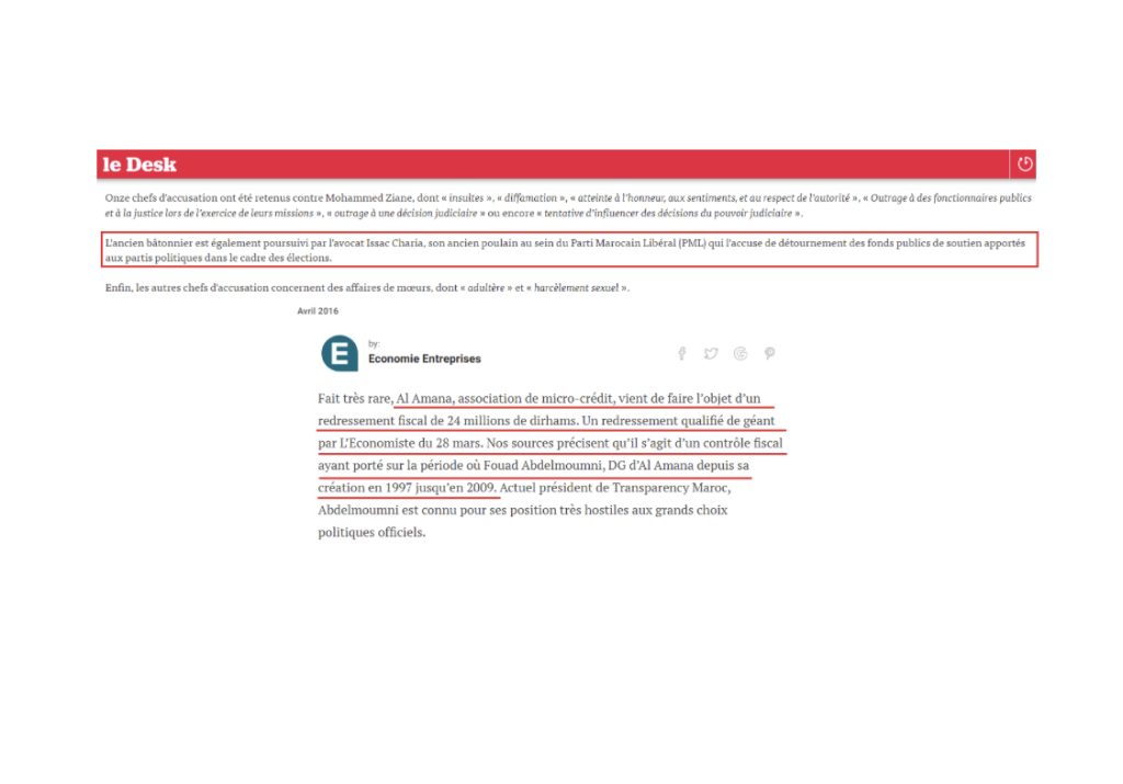 6-Si, à propos de la dilapidation des deniers publics, Zellal dialna s’est montré très laconique sur la plainte déposée à son encontre par son ex-challenger au sein du Parti Marocain Libéral, Isaac Charia, l’accusant de détournement de l’aide étatique aux partis politiques pour les élections, eh bah je suis prêt à parier que Fouad Abel-Moue-Trique n’hésitera pas à nous dévoiler les bonnes feuilles de sa gestion, pendant 12 ans, de l’association de micro-crédit « Al Amana », qui a fait l’objet, après son départ, d’un redressement fiscal de 24 millions de dirhams….Une prouesse qui lui a « vachement » servi pour briguer le poste de secrétaire général de Transparency Maroc, où pour éviter d’être confronté à un redressement d’un autre genre, il s’est vu contraint de convoler en justes noces avec l’ex-trésorière de cette ONG de lutte contre la corruption…