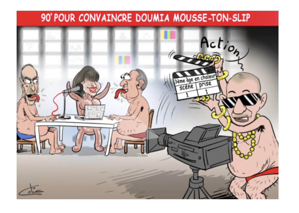 4-Si, à la question relative aux galipettes, Maitre Zellal sur sa chair perchée, avait confirmé que c’était bien son postérieur que Ouahiba Khourchech séchait Mziaaaaaaaaaane sur la vidéo divulguée par « Chouf Tv », eh bah jpeux déjà vous dire que Fouad Abel-moue-trique n’hésitera pas un instant à faire de même, en confirmant que c’était bien sa calvitie que l’on voyait, dans les vidéos WhatsApp, en train de chevaucher l’épouse d’un cador bien connu de l’AMDH et qu’il s’agit bien de lui, dont les pom-pom girls de cette association parlent, quand elles se racontent leur « première fois » avec le pote intime de leurs papas respectifs: 3ammou Fouad, le tonton qui « adore le bonheur dans le regard des enfants »…