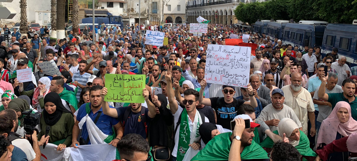 A l’instar des autres cortèges, les manifestants ont entamé leur marche à partir de la Place des Martyrs où les forces de l’ordre ont procédé à encercler les protestataires. Les manifestants ont ensuite emprunté l’itinéraire habituel pour arriver au centre-ville. Ils ont scandé les slogans habituels, hostiles au pouvoir et dit non aux élections présidentielles dans les conditions actuelles.