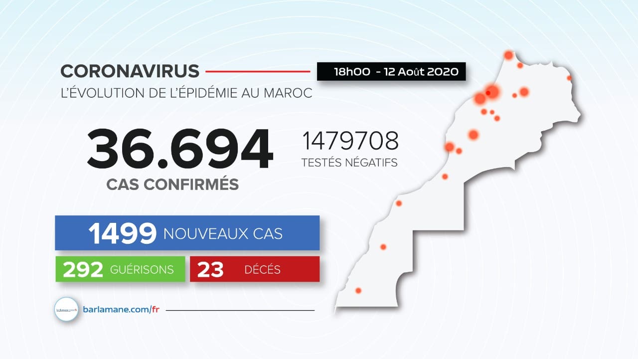 1.499 nouveaux cas d’infection au nouveau coronavirus ont été confirmés au Maroc jusqu’à 18h00, portant à 36.694 le nombre total des cas de contamination, annonce le ministère de la Santé.