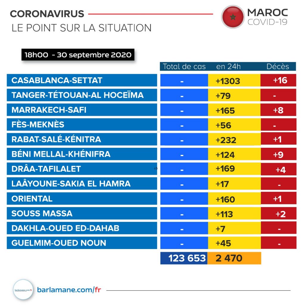 2 470 nouveaux cas d’infection au nouveau coronavirus ont été confirmés au Maroc jusqu’à 18h00, portant à 123 653 le nombre total des cas de contamination, annonce le ministère de la Santé.