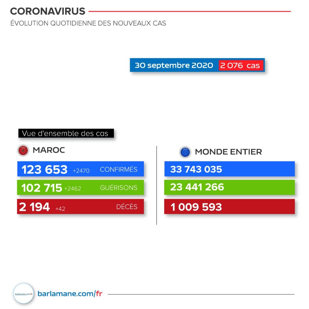 Depuis le comptage réalisé hier à 18h00, 2 470 nouveaux cas ont été recensés au Maroc. Le nombre de rémissions s’est établi à 102 715 alors que le bilan des décès s’élève à 2 194.