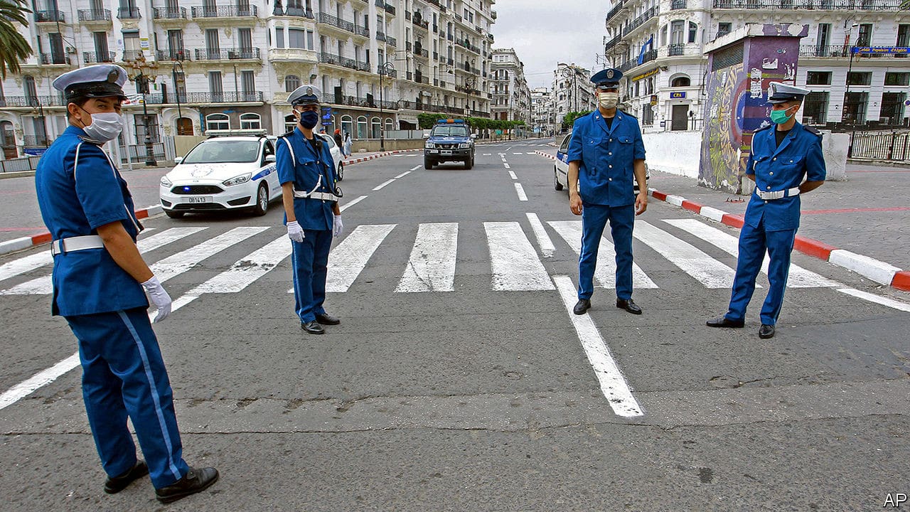 Comme d’autres pays, l’Algérie a interdit tous les rassemblements publics en réponse au virus. Mais, contrairement à ailleurs, les autorités ne semblent pas pressées de relâcher les choses. M. Tebboune a récemment prolongé le verrouillage, y compris un couvre-feu à 17 heures, jusqu’au 13 juin. Le gouvernement a utilisé l’épidémie pour réprimer le Hirak, comme le mouvement de protestation est connu, bloquant des sites Web critiques, interdisant ce qu’il appelle des «fausses nouvelles» et arrêtant certains qui ont déplacé leur opposition en ligne. De nombreux dirigeants du mouvement étaient déjà en prison, accusés de délits vagues tels que «atteinte à l’unité nationale» ou atteinte à «l’intégrité du territoire national». Les efforts visant à réduire la surpopulation carcérale pendant l’épidémie en libérant certains détenus ont exclu les dirigeants Hirak (bien que deux seront bientôt libérés, selon le chef d’un parti d’opposition).