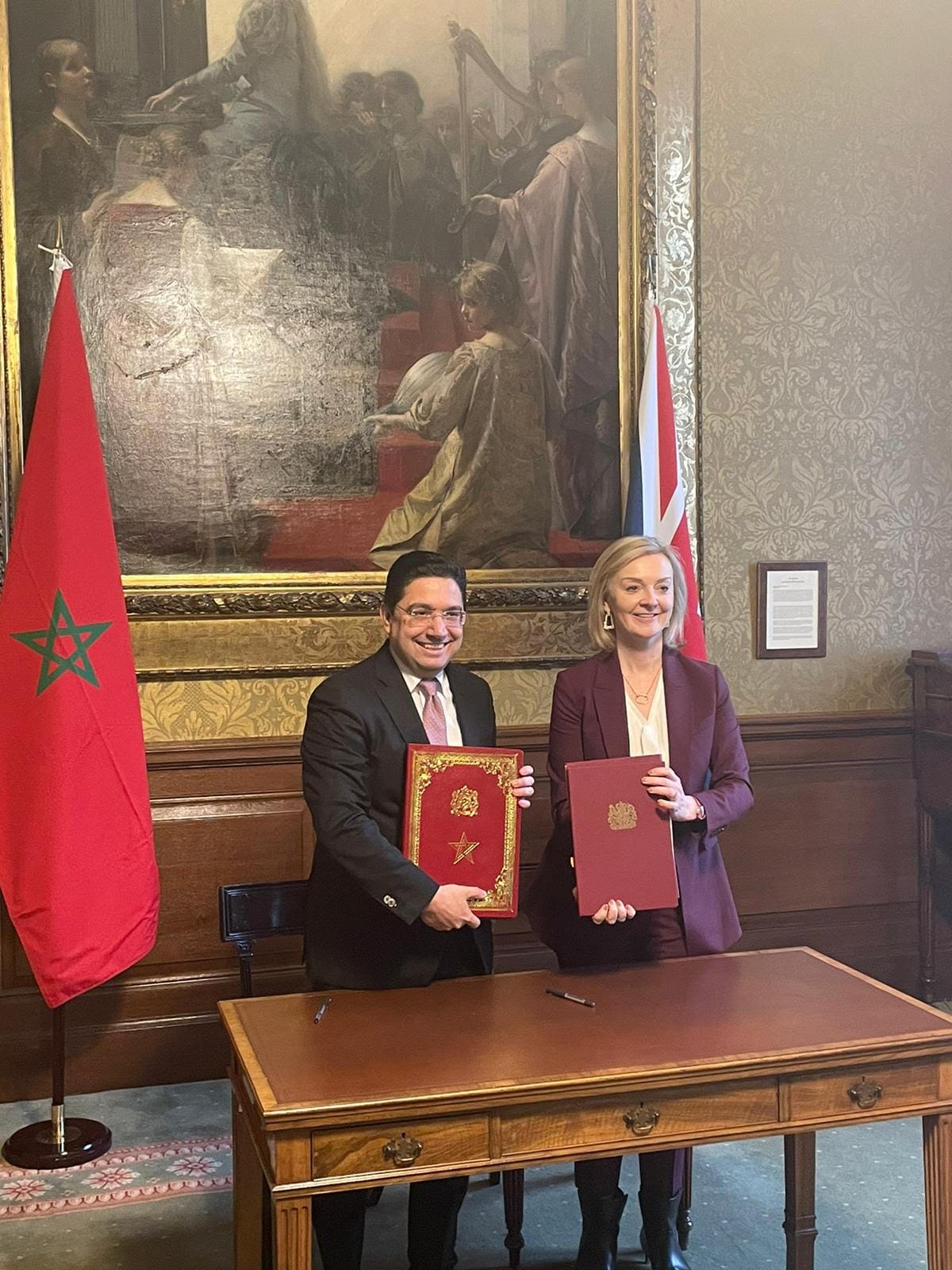 La ministre britannique des Affaires étrangères Liz Truss et le ministre des Affaires étrangères, de la Coopération africaine et des Marocains résidant à l’étranger Nasser Bourita ont rappelé que la résolution 2570 du Conseil de sécurité de l’ONU soulignait le rôle central des Nations unies dans la facilitation d’un processus politique inclusif mené par et pour les Libyens.