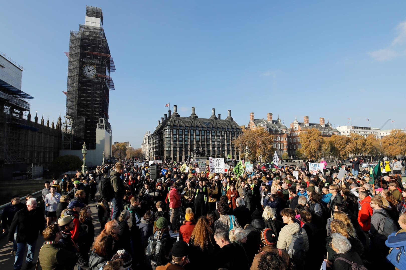 Dans un autre endroit, d’importants groupes de militants ont bloqué deux endroits proches du Parlement. Ils portaient des banderoles avec des slogans tels que «Le changement climatique privera nos enfants d’un avenir, sauf si nous agissons maintenant».