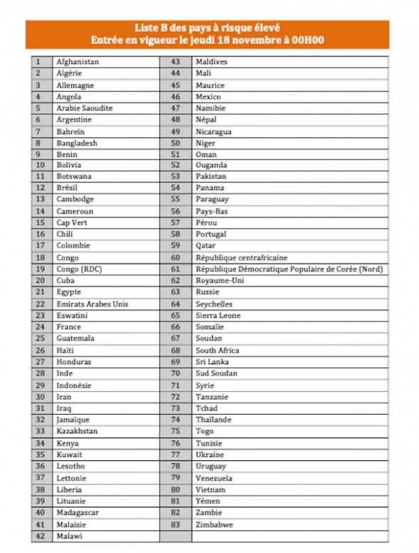 Le ministère de la Santé a également révisé la liste des pays qui figurent dans la liste B. Un seul pays a été retiré de cette liste. Il s’agit de l’Espagne qui a été ajouté à la liste A.