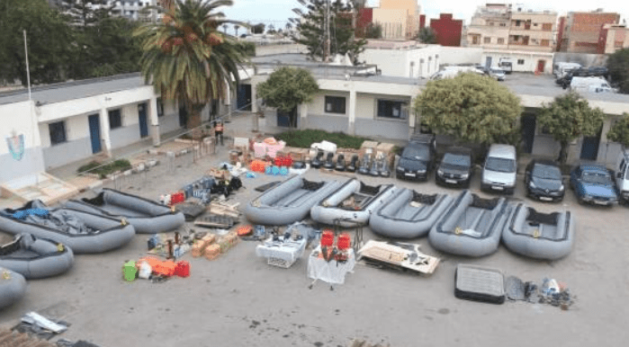 Les perquisitions effectuées dans le cadre de cette affaire ont permis l’arrestation de 9 ressortissants subsahariens candidats à l’émigration clandestine (8 comoriens et 1 ivoirienne) et la saisie de 10 embarcations pneumatiques de fabrication locale, 23 motogodilles, 7 véhicules, 6 boussoles, près de 1 000 gilets de sauvetage, 39 gonfleurs, 7 jerricans, 2 machines à coudre, des lots de valves, et de bâches en plastique imperméable, 219 bouteilles d’huile à moteur (2l), des accessoires utilisés dans la fabrication des embarcations, 1 fusil artisanal rouille, 5 colis de chira (pesant 150 kg), des coutelas, 1 bombe lacrymogene, 2 plaques minéralogiques, des GSM et les sommes de 176.390 dh et 15 euros, précise-t-on.