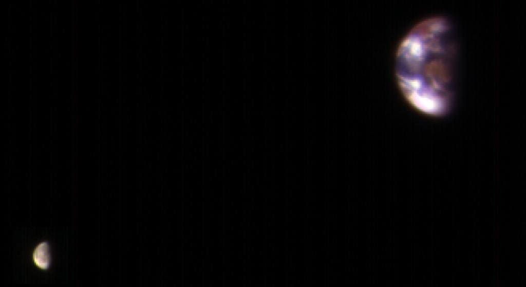 Les images ont dû être traitées numériquement pour que les deux objets célestes nous apparaissent clairement. A une telle distance, la Lune est notamment plus sombre que la Terre. Toutefois, les tailles et position dans l’espace sont justes. La partie éclairée de la Terre correspond à l’Australie et à une partie de l’Asie. Quant à la masse blanche, il s’agit de l’Antarctique.