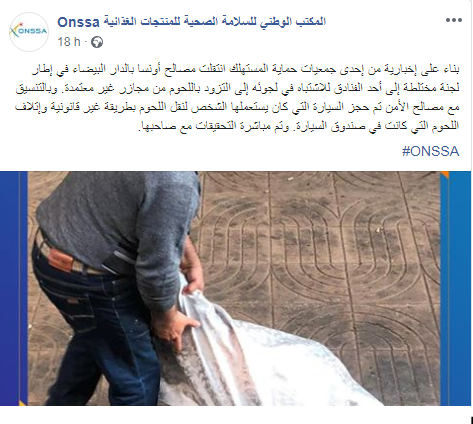 Dans une publication sur sa page Facebook, l’Office national de sécurité sanitaire des produits alimentaires (ONSSA) a indiqué qu’il a procédé à la saisie d’une importante quantité de viande avariée dans un hôtel à Casablanca.