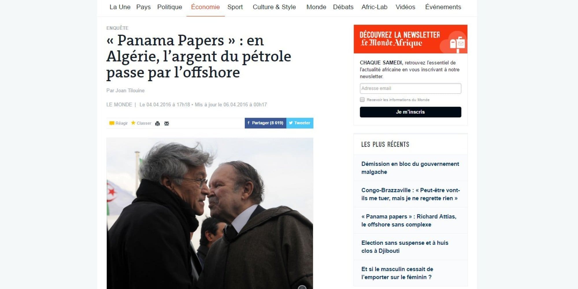 Le 5 avril dernier, Le Monde avait publié l’enquête « Panama Papers » sous le titre « l’argent caché des chefs d’État », illustrée par un portrait de Bouteflika au côté de quatre autres dirigeants. Or, le nom du président n’était pas mentionné dans les fichiers révélés.