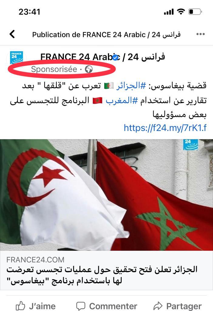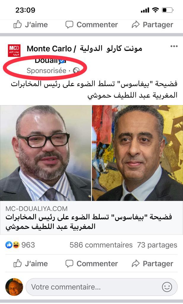 Moyennant finance, certains contenus sur les réseaux sociaux peuvent être ciblés vers certains utilisateurs. La radio Monte Carlo Doualiya (MCD) et la chaîne d’information internationale en continu France 24, toutes les deux propriétés de la société nationale de programme France Médias Monde, qui supervise l’audiovisuel extérieur de la France, ont consacré une couverture pour le moins problématique de l’affaire Pegasus.