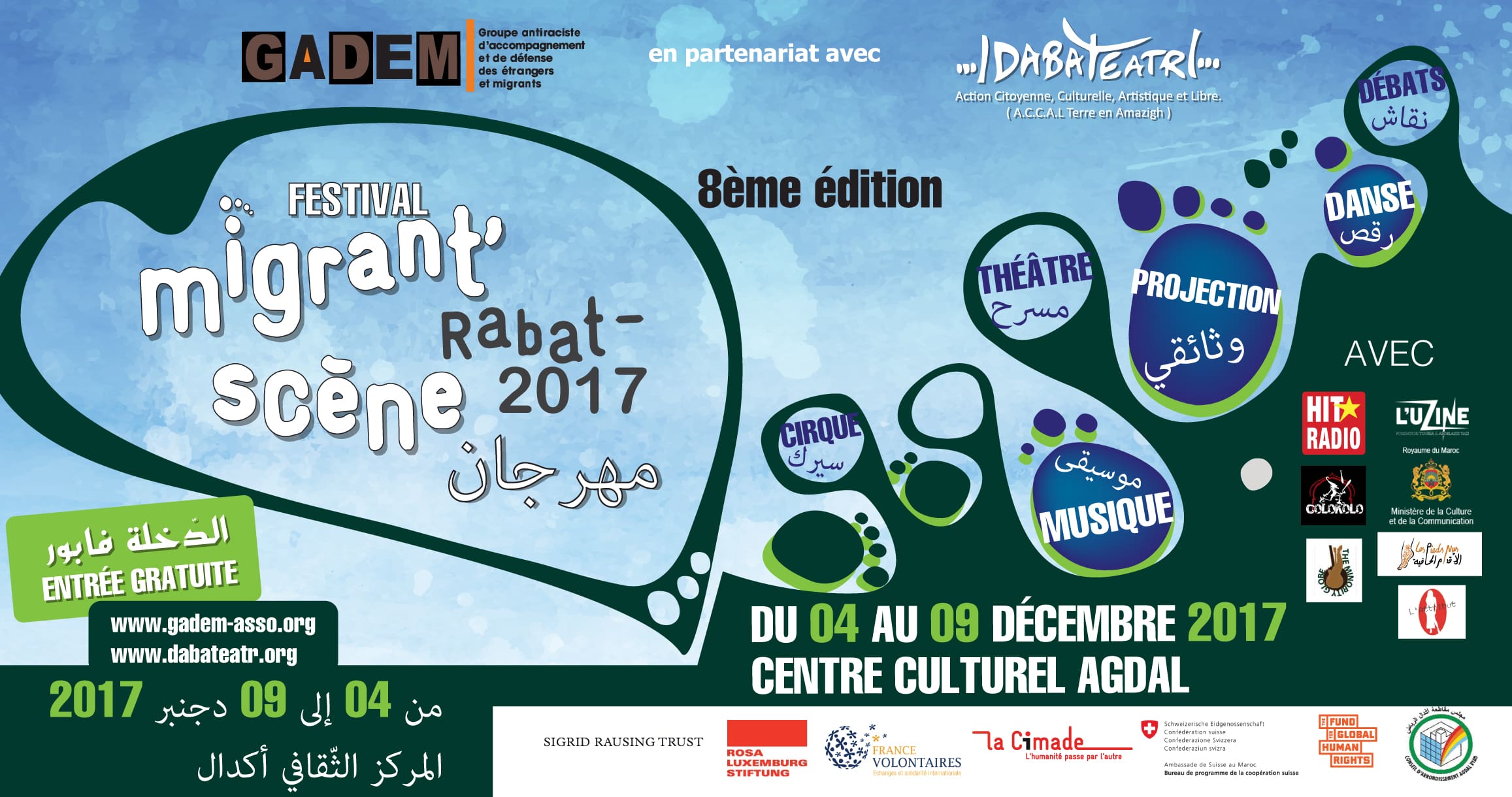 Prévu dans sa 8ème édition du 4 au 9 décembre 2017 à Rabat, cet événement est organisé par le groupe antiraciste d’accompagnement et de défense des étrangers et migrants en partenariat avec la compagnie Dabateatr.