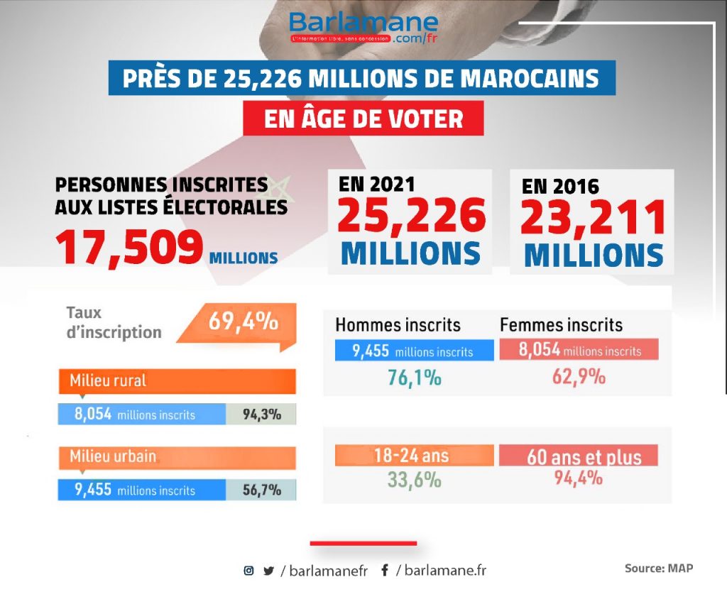 Dans ce document publié à l’occasion des triples élections législatives, régionales et communales prévues le 8 septembre 2021, le HCP précise que parmi ces primo-votants on compterait 1,473 million de femmes (49,1 %) et 1,792 million de citadins (59,7%).