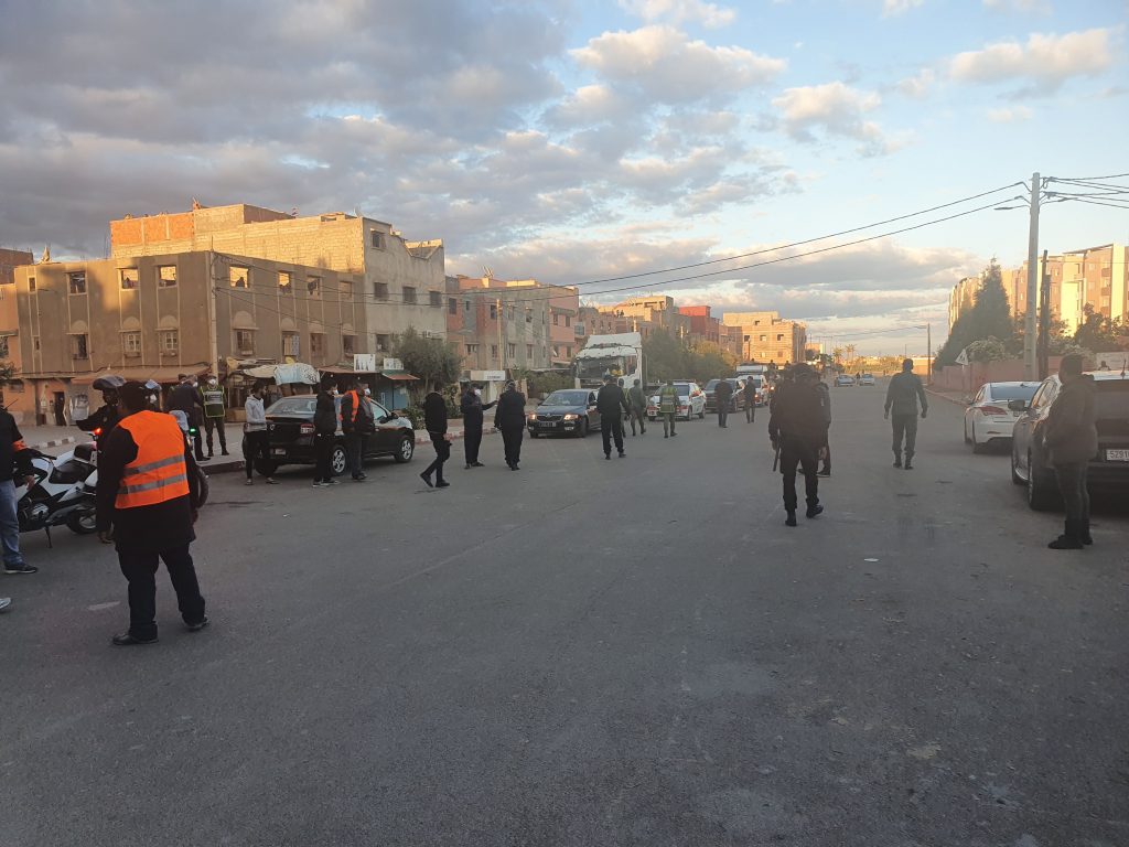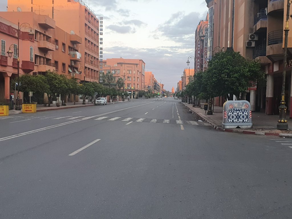 Durant une tournée faite en compagnie des autorités locales, les services de police, les forces auxiliaires et des unités des FAR, Barlamane.com/fr a remarqué une forte baisse de la circulation dans la plupart des artères de la ville ocre, qui connaissaient des embouteillages en temps normal. De plus, les passants se font de plus en plus rares sauf ceux obligés d’être dehors. Ils sont tous munis de leur laisser-passer.