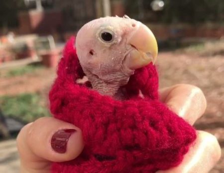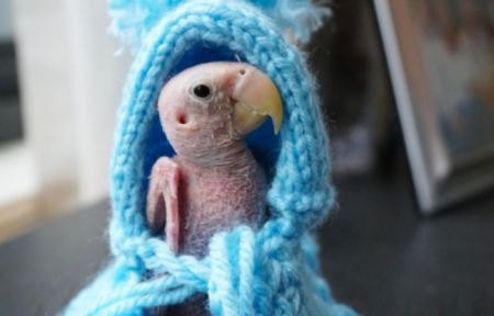 La raison? Rhea a récemment commencé à recevoir des mini-pulls tricotés sur-mesure pour elle par les internautes du monde entier, émus par l’état du perroquet qui ne peut par ailleurs plus voler et est devenu particulièrement sensible au froid.