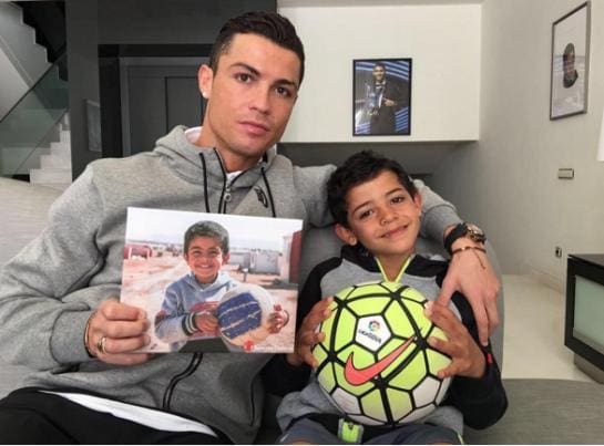 Cristiano Ronaldo pose aux cotés de son fils en guise de solidarité avec les enfants syriens