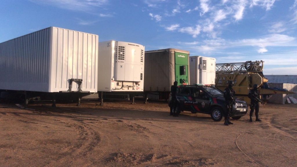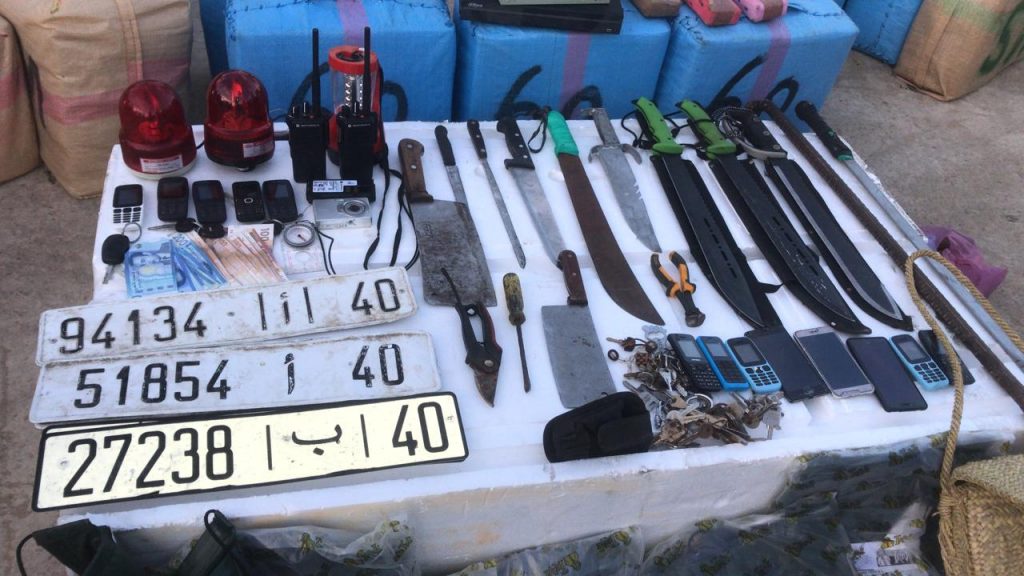 La perquisition de la ferme a également mené à la saisie de différents 8 conteneurs de camions équipés pour le trafic de drogue en grandes quantités, 4 voitures, de fausses plaques d’immatriculation, ainsi qu’un grand nombre d’armes blanches de différentes tailles, et de grandes sommes d’argent.