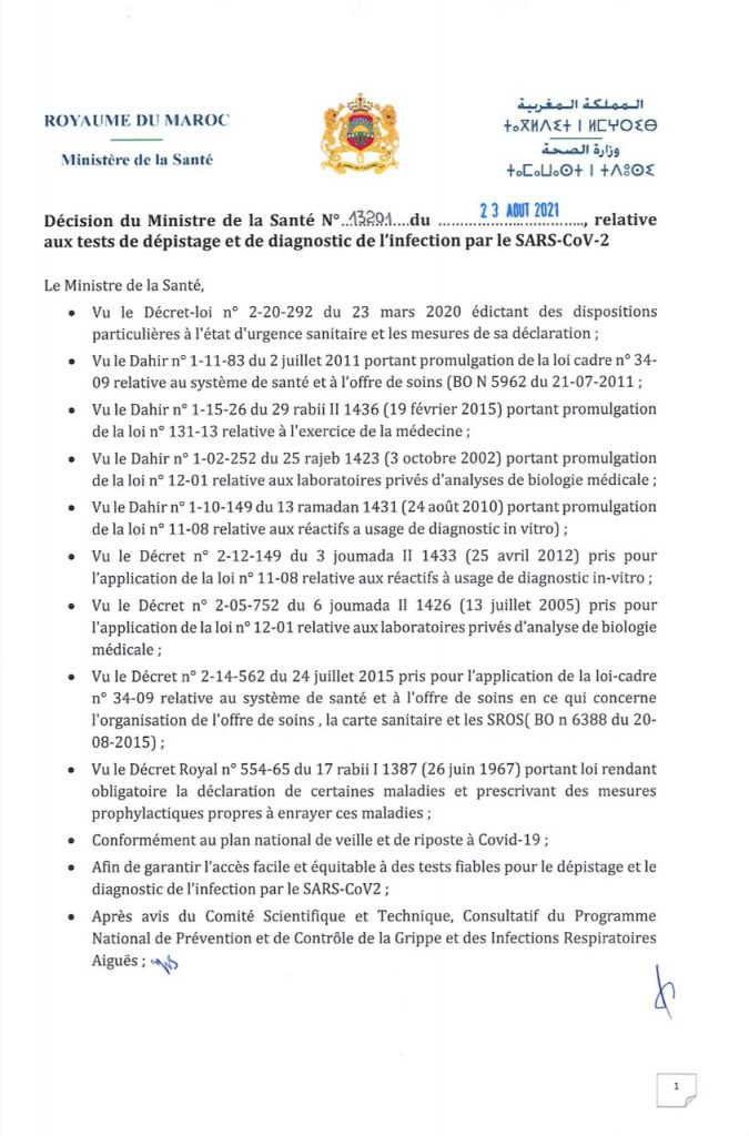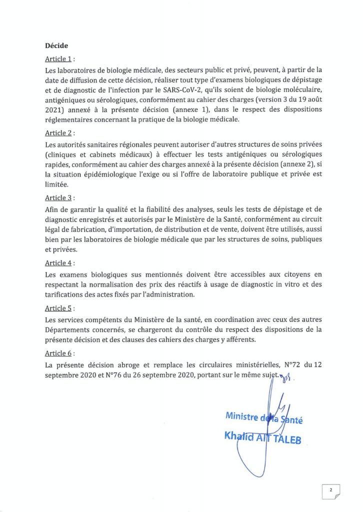 Et afin de garantir la fiabilité des analyses, le ministère de santé précise que « seuls les tests de dépistage et de diagnostic enregistrés et autorisés par le ministère, conformément au circuit légal de fabrication, d’importation, de distribution et de vente, doivent être utilisés ».