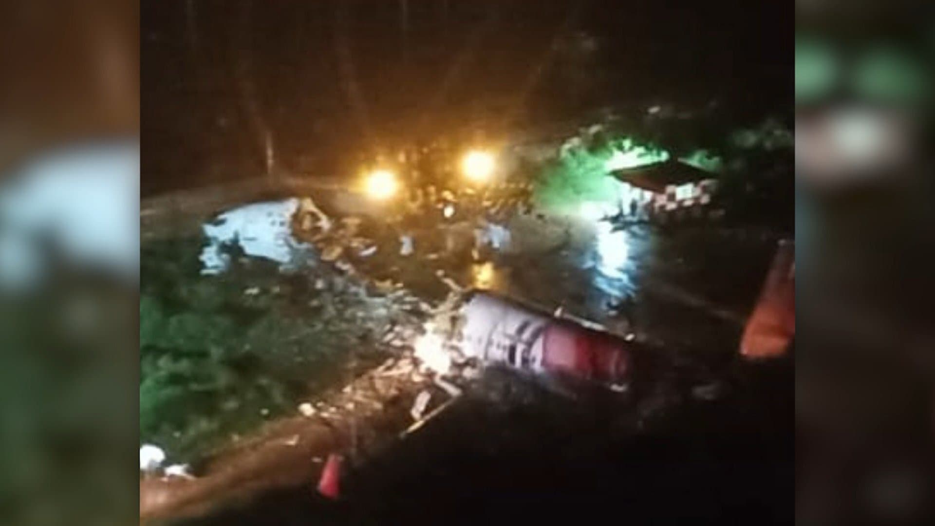 L’avion a dépassé le bout de la piste et dévalé une pente d’une hauteur de 10 mètres, selon le ministère de l’Aviation. Des images télévisées montrent des portions de fuselage déchiquetées, entourées par les équipes de secours qui les arrosent d’eau dans le noir. Aucun signe d’incendie n’est visible, mais les opérations sont compliquées par la pluie.